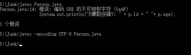 - 使用cmd打开java文件,报错:“错误,编码GBK的不可映射字符”