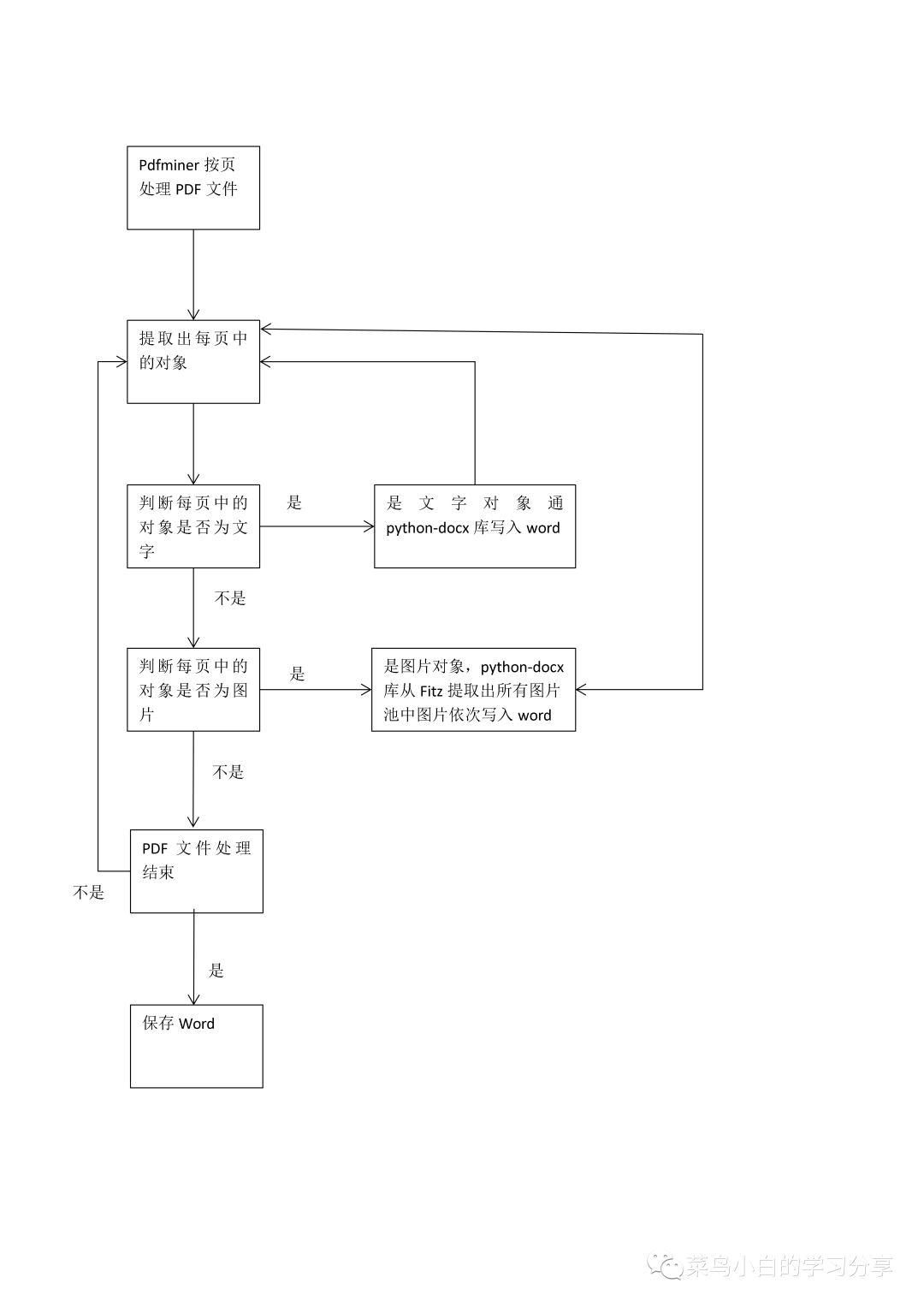 # 循环遍历列表,每次处理一个page内容# doc.get_pages()获取page列表for page in doc.get_pages():interpreter.process_page(page)# 接收该页面的LTPage对象layout = device.get_result()# 这里的layout是一个LTPage对象 里面存放着page解析出来的各种对象# 一般包括LTTextBox,LTFigure,LTImage,LTTextBoxHorizontal等等一些对像# 想要获取文本就得获取对象的text属性for x in layout:try:if (isinstance(x, LTTextBoxHorizontal)):# with open('%s' % (save_path), 'a') as f:# result = x.get_text()# print(result)# f.write(result + "\n")result = x.get_text()print(result)doc_object.add_paragraph(result)elif (isinstance(x, LTFigure)):cont +=1images = r".\图片\图片{}.png".format(cont)print(images)# doc.add_paragraph(string) # 添加文字doc_object.add_picture(images, width=Inches(7)) # 添加图, 设置宽度except:print("Failed")
