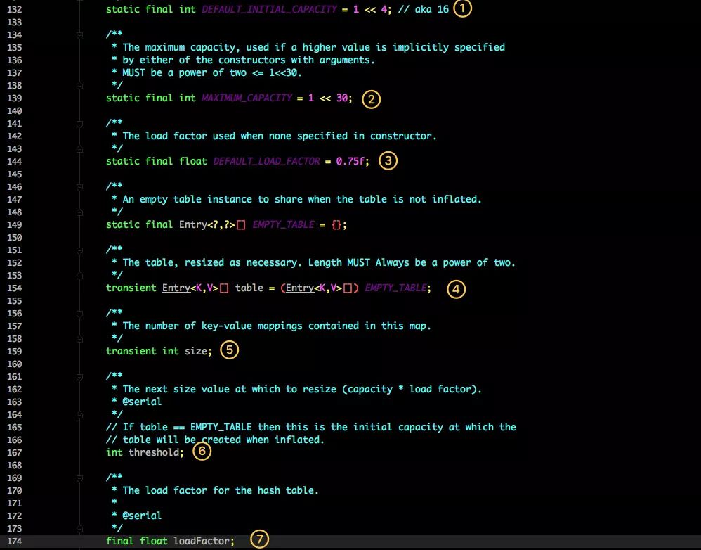 这是 HashMap 中比较核心的几个成员变量;看看分别是什么意思?