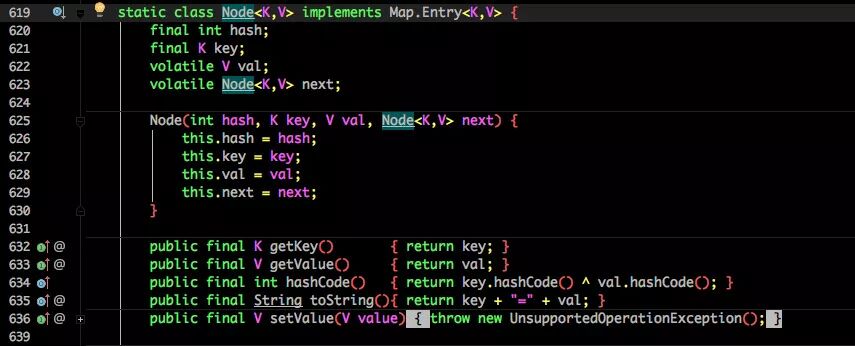也将 1.7 中存放数据的 HashEntry 改为 Node,但作用都是相同的。