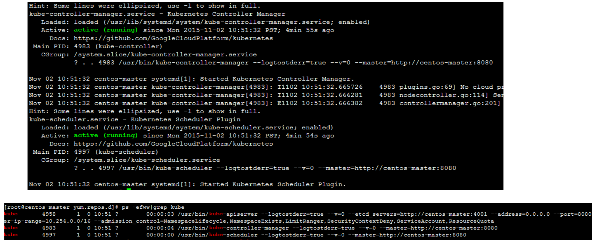 for SERVICES in etcd kube-apiserver kube-controller- manager kube-scheduler; do