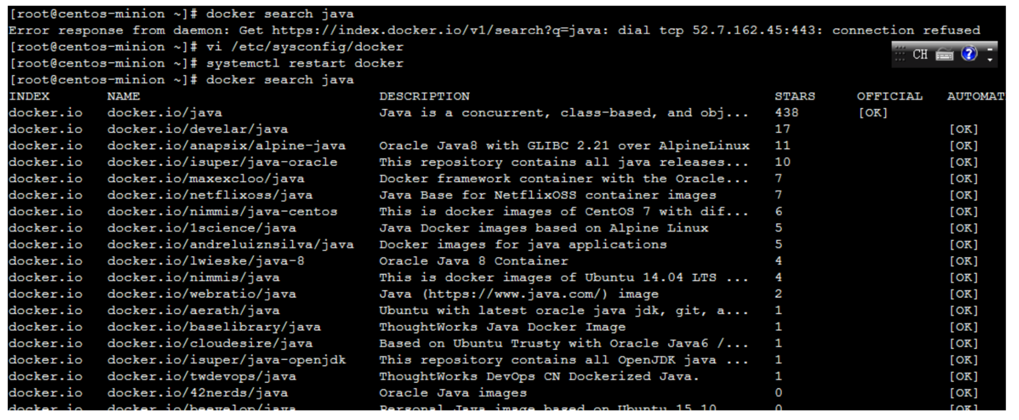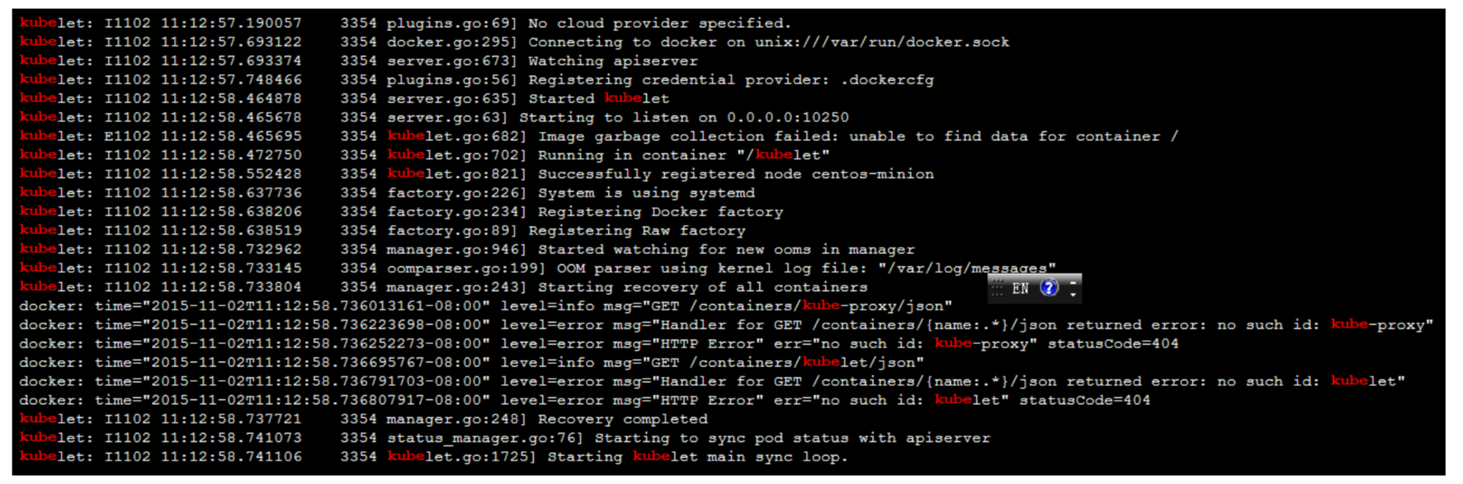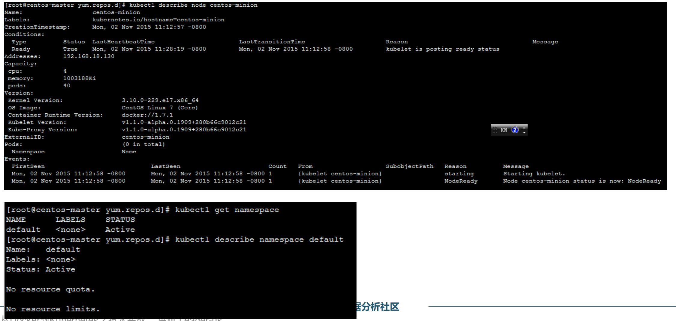 NAME LABELS STATUS centos-minion kubernetes.io/hostname=centos-minion Ready (ready表示成功)