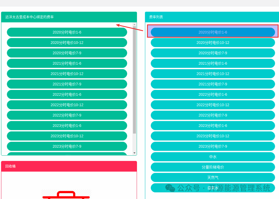 图3-8能源费率列表