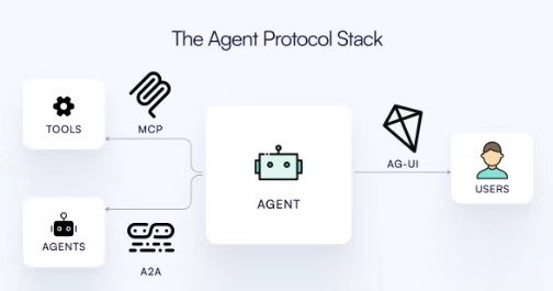 一个智能体可以同时使用这三种协议:用MCP调用工具,用A2A与其他智能体通信,用AG-UI与用户协作。