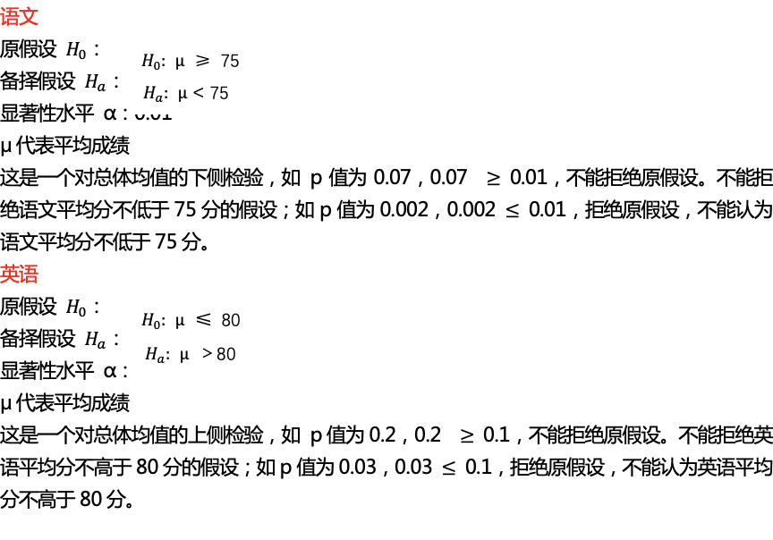 print('注:拒绝原假设,False表示不拒绝原假设,True表示拒绝原假设。')