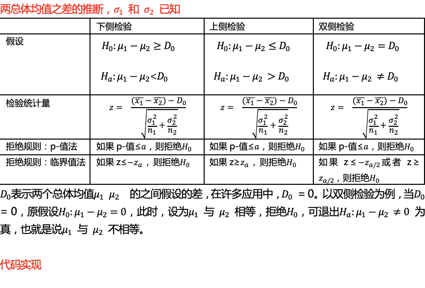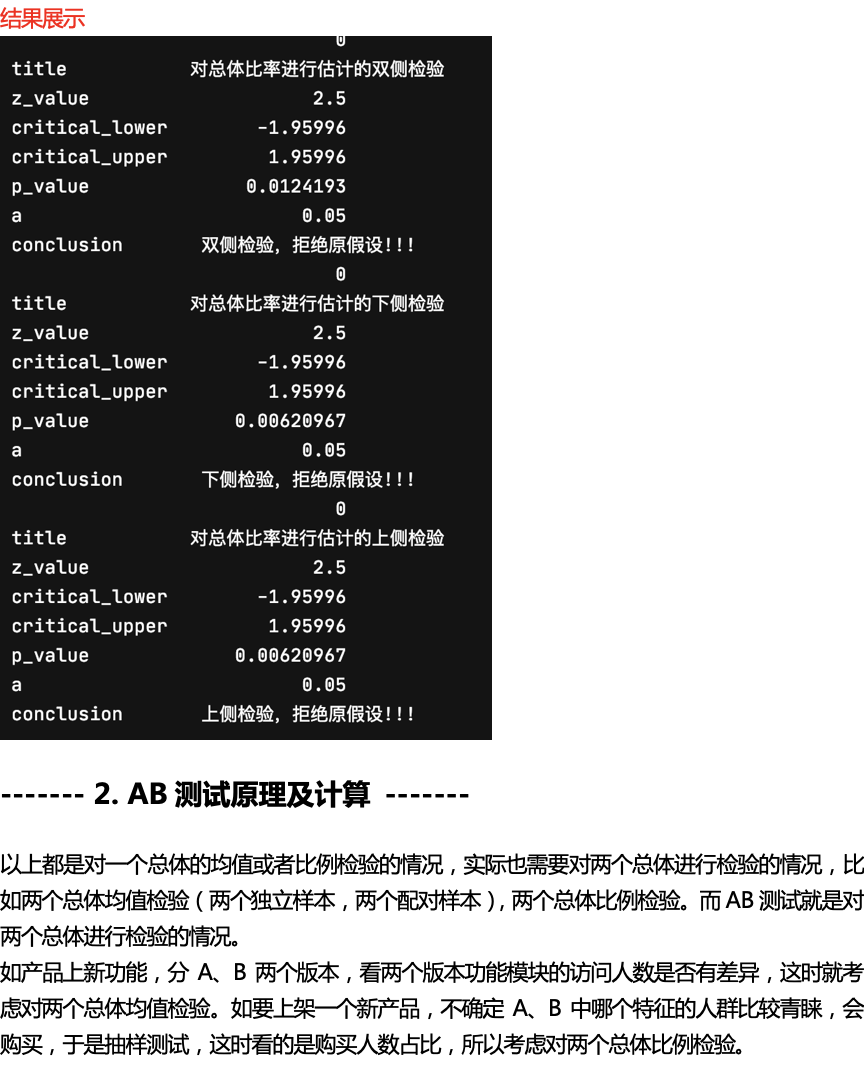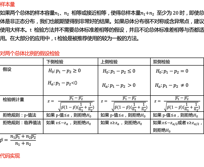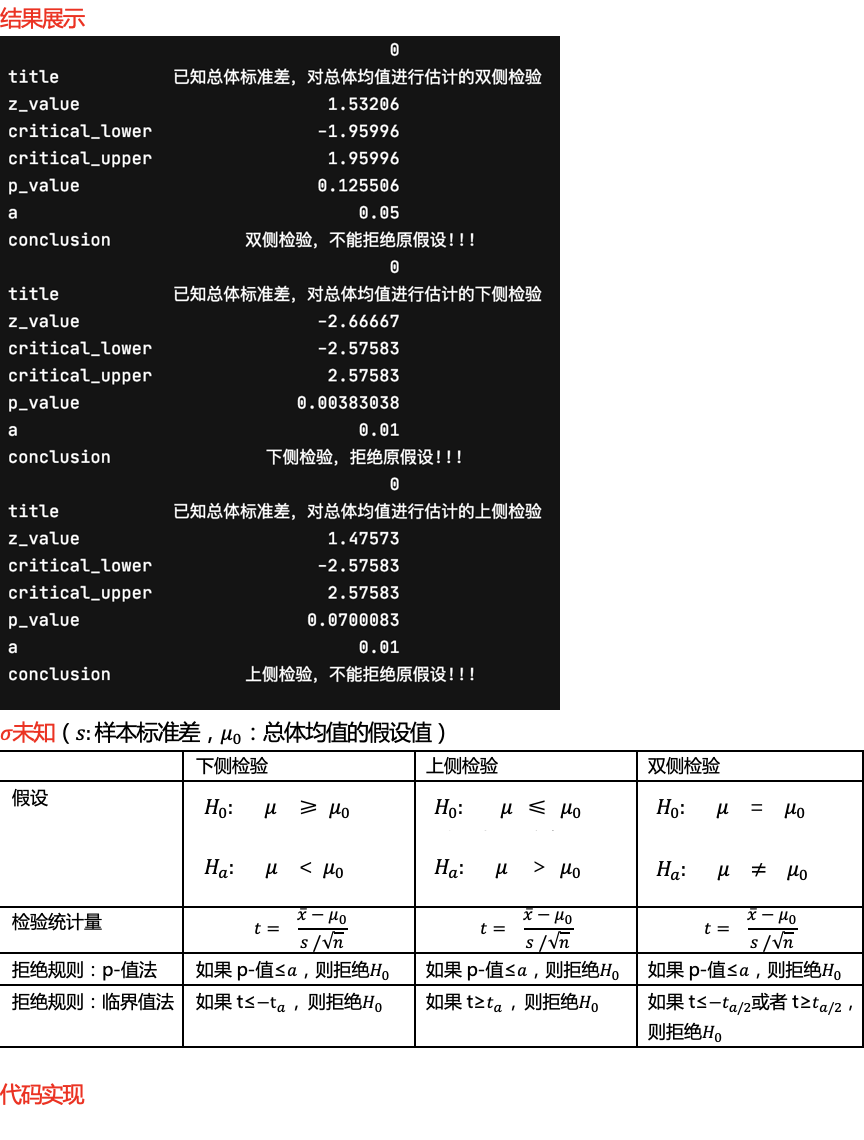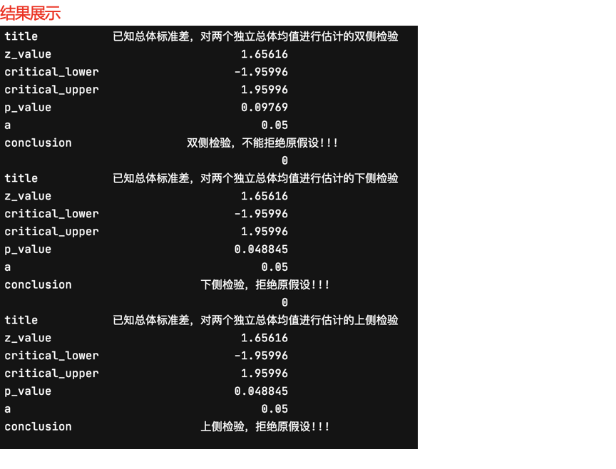if (z <= critical_lower) or (p/2 <= alpha): # 用临界值法和P值法都可以检验