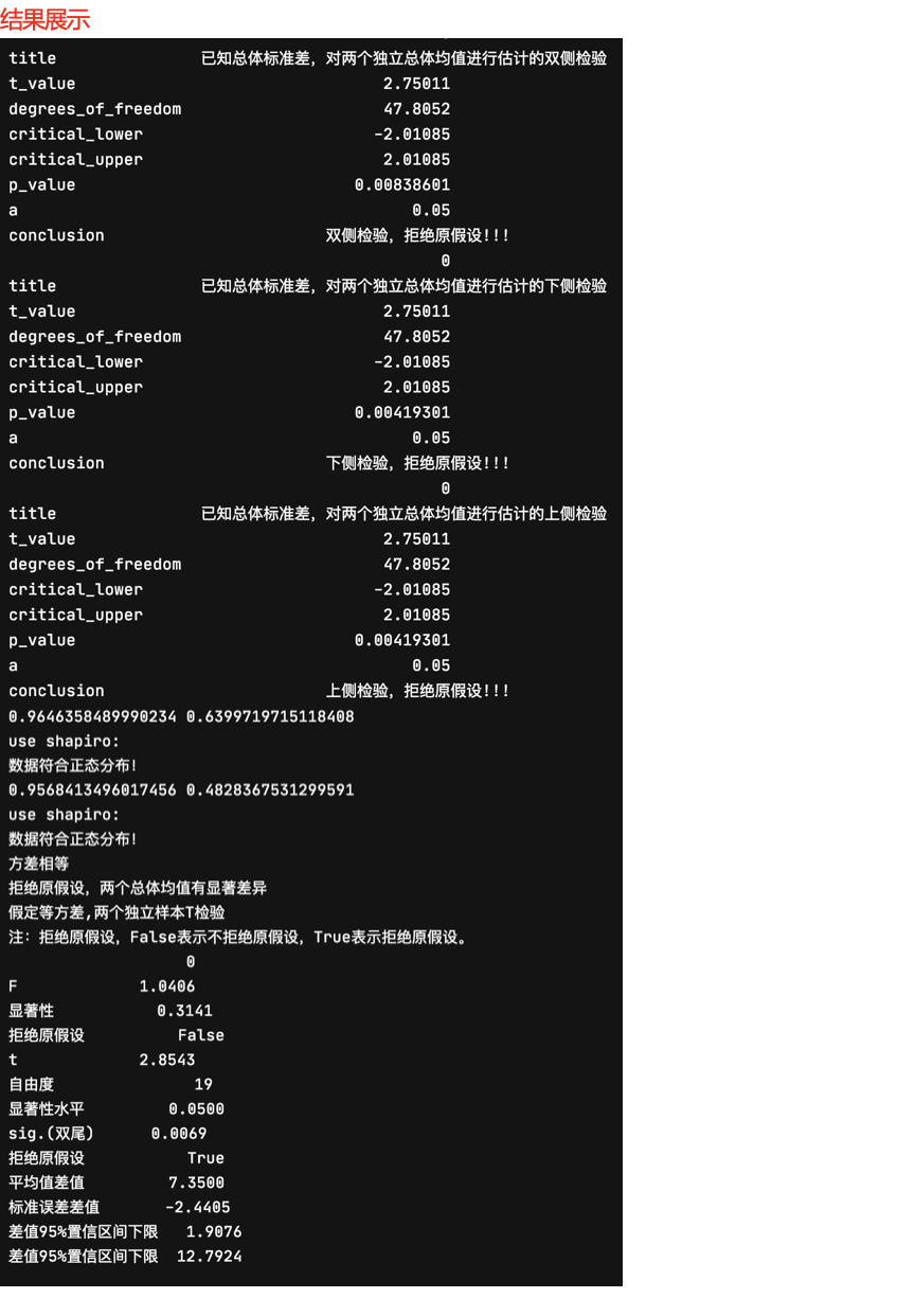 "conclusion":"双侧检验,拒绝原假设!!!"