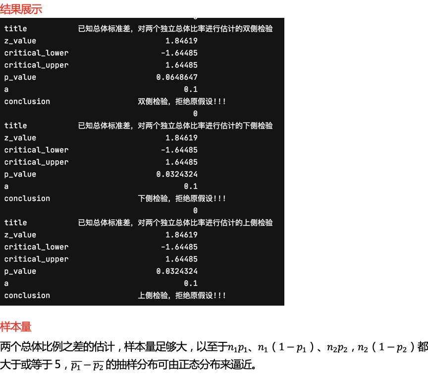 场景:对两个独立总体比率进行估计,用z检验