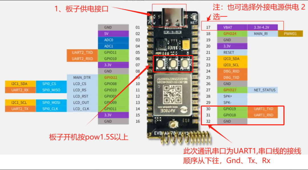 当我们模块开机时,按着BOOT键然后点按重启键即可。