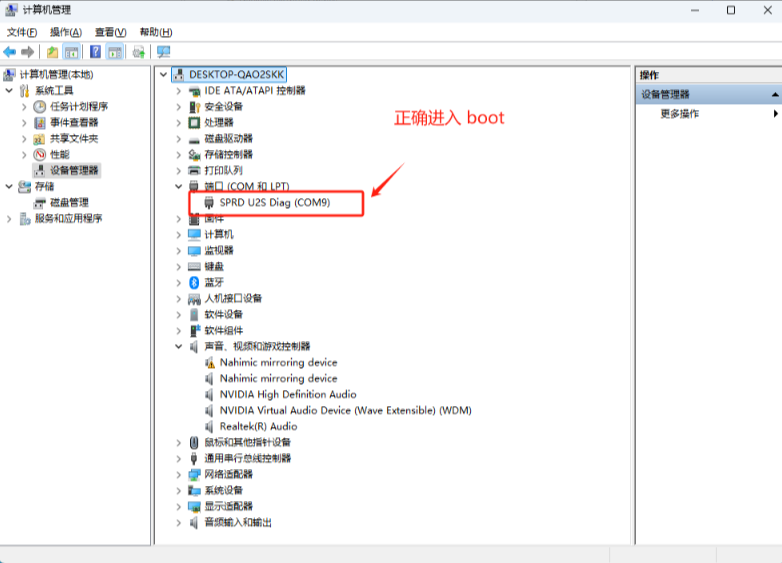 判断是否进入BOOT模式:-模块上电,此时在电脑的设备管理器中,查看串口设备,如下图: