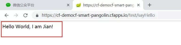 根据Route提供的地址,访问我们的测试代码,可以看到测试成功!