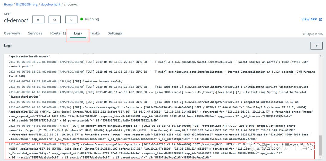 根据Logs提供的日志信息,可实时滚动查看日志: