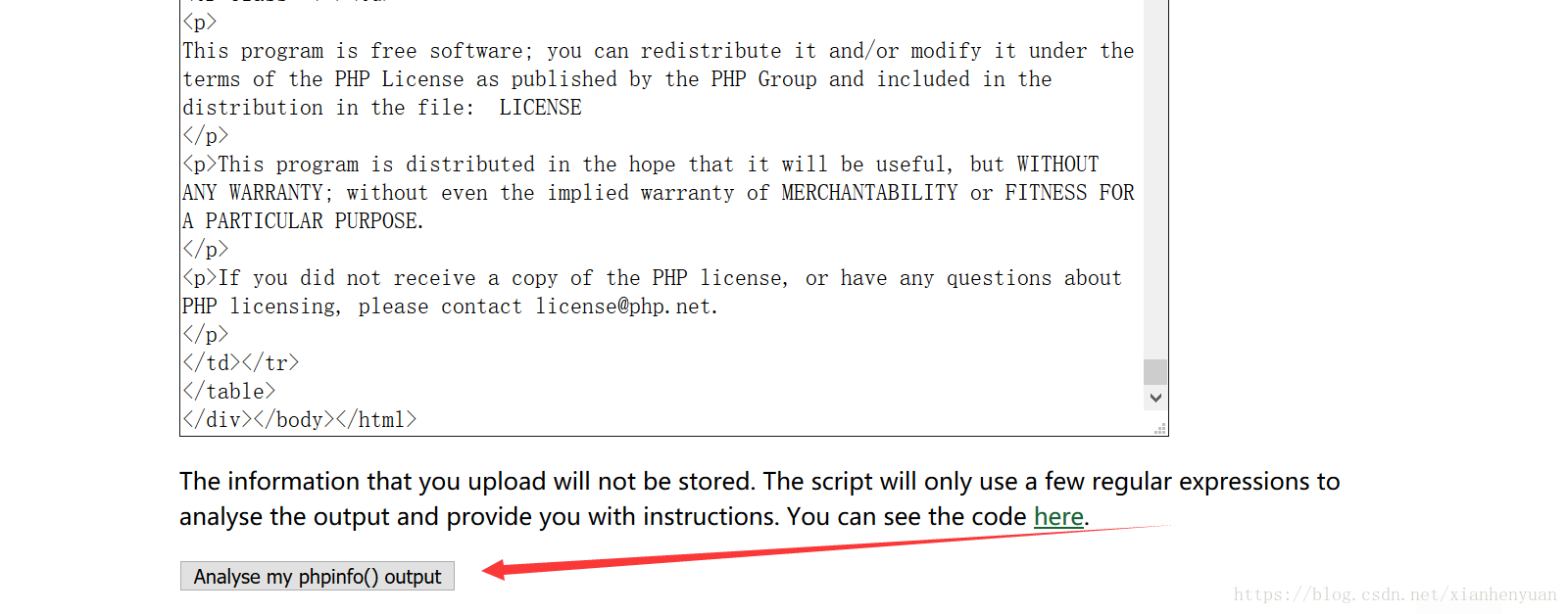 - 将自己的 phpinfo 的源代码赋值粘贴到 第 ① 步弹出页面的输入框内,