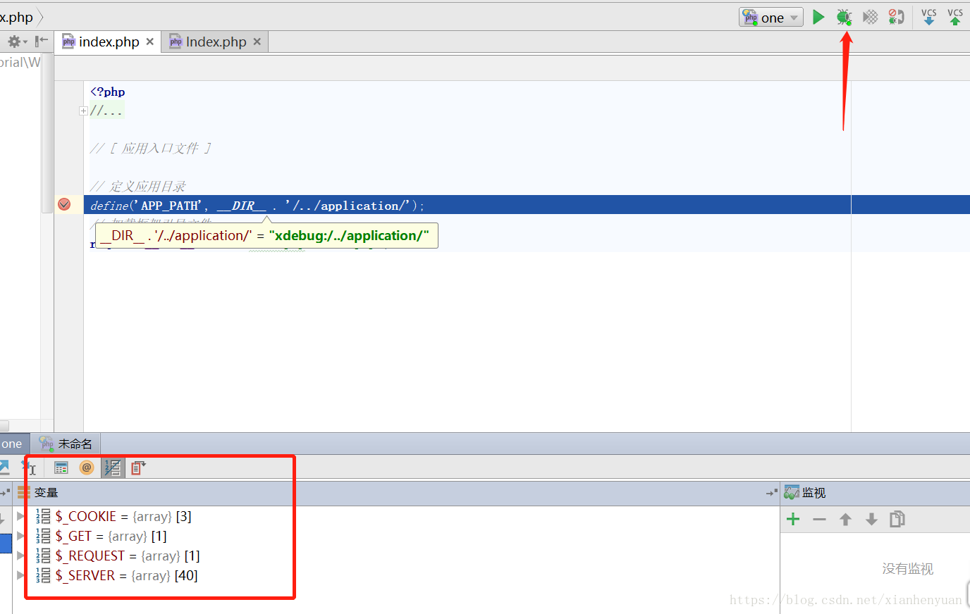 - 点击 调试 logo 浏览器会弹出调试的页面,PHPSTORM会显示断点的信息。