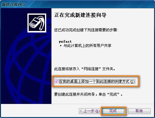 第八步:勾选-在我的桌面添加一个到此连接的快捷方式,点击-完成
