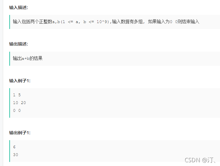 3.输入数据有多组, 如果输入为0 0则结束输入