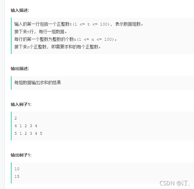 2.第一行为一个整数,告诉你有几组数据,剩下的行是每组的数据