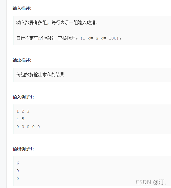 4.多组数据,每一行第一个数字代表这一组共有几个数据。当行中第一个数字为0时结束。