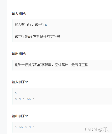 8. 输入有两行,第一行n 。第二行是n个空格隔开的字符串,进行排序