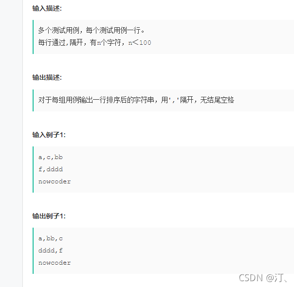 10.多个组,每个测试组是一行,字符串通过空格隔开。输出:每个字符串间用','隔开,无结尾空格。