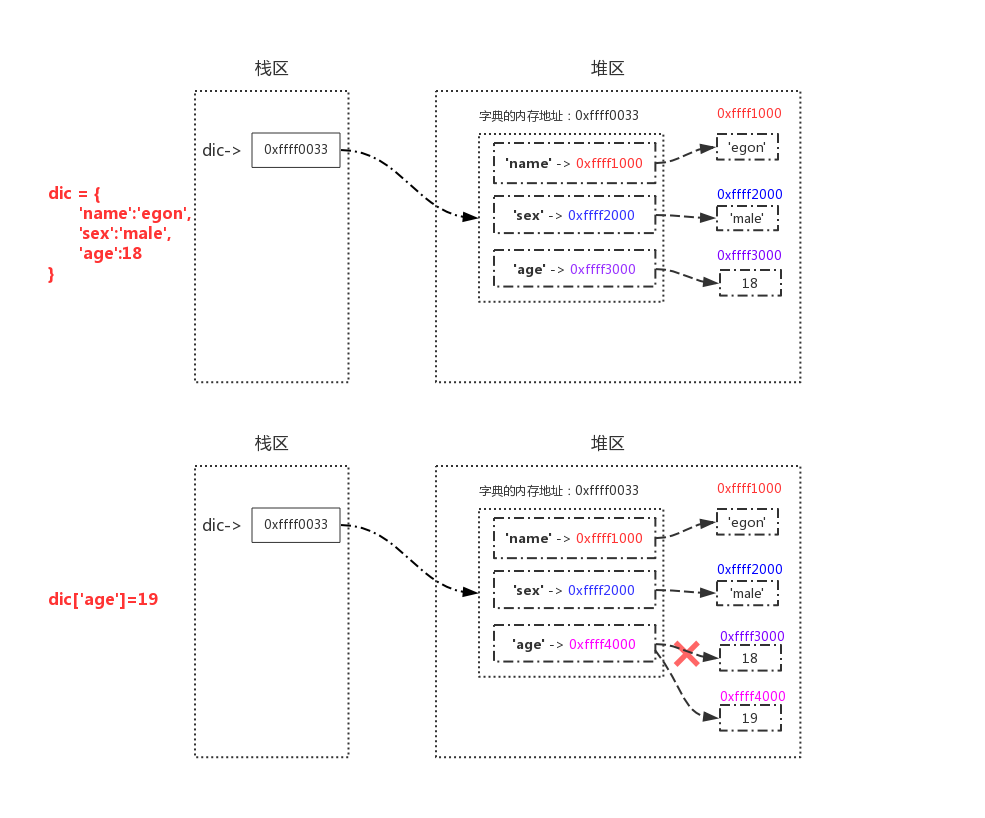 # 对字典进行操作时,值改变的情况下,字典的id也是不变,即字典也是可变数据类型
