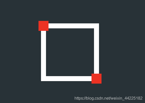 - 两个伪类元素为绝对定位,分别位于正方形的左上和右下