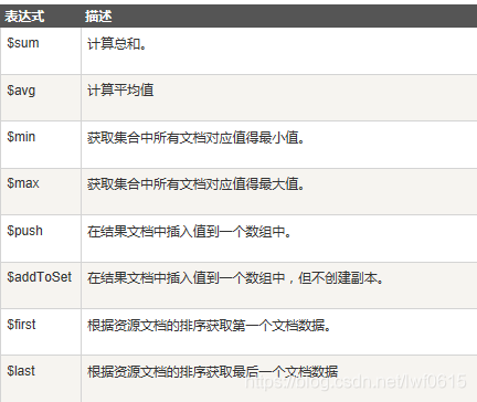 | aggregation (e.g. group by) | MongoDB provides three ways to perform aggregation: the aggregation pipeline, the map-reduce function, and single purpose aggregation methods.(聚合操作) |