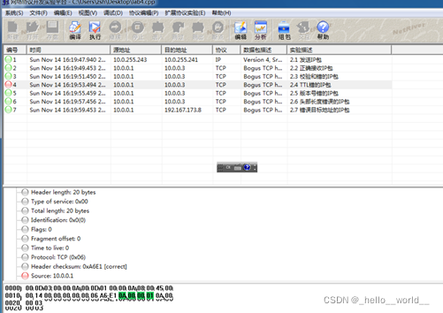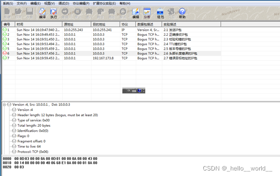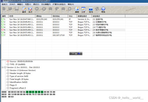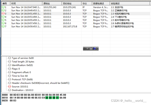 ① 版本号检测原理:由于本实验使用的是IPV4,因此需要检测版本号是否等于4。