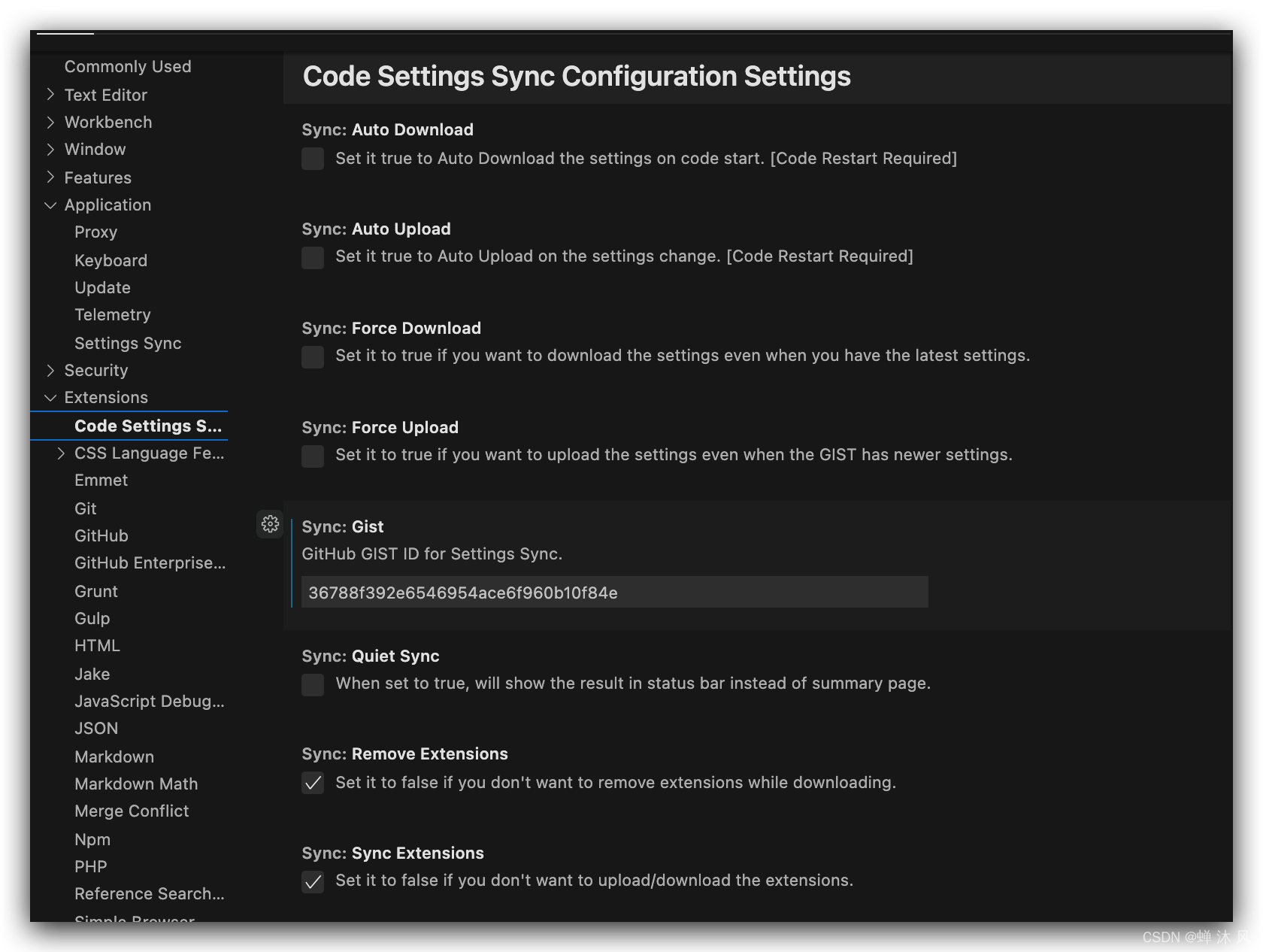 Extensions——Code Settings Sync,出现该插件的所有可视化配置