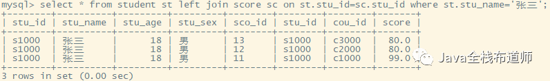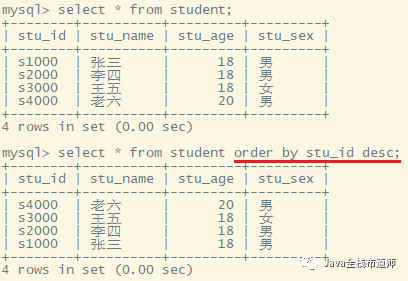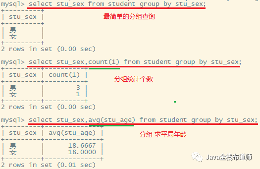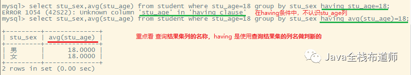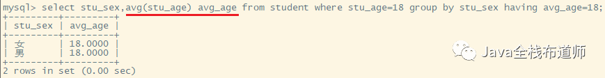 列名为avg(stu_age) 看着有点怪怪,给他取个别名就一目了然: