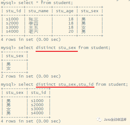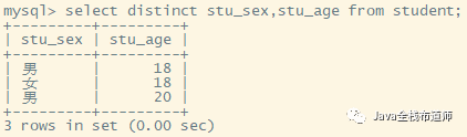 distinct 关键字是对 “查询结果集” 去重,再看个例子就明白了。