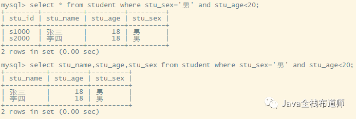 简单的条件查询。符号“*”代表查询所有字段,如果只想看其中某些列,则写表的列名。