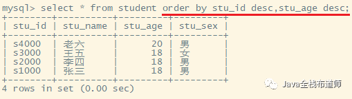[order by field1 [desc|asc], field2 [desc|asc],...,fieldn [desc|asc]];