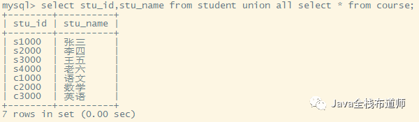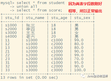 将两个过多个表的查询结果合并成结果集输出。合并的条件是多个表的查询结果字段数要相同,注意是查询结果字段数不是表字段数。