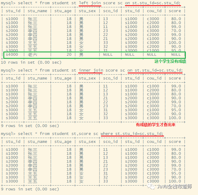 左连接:选出左表所有的记录,不管右表有没有和它匹配;左表是主,关联右表信息