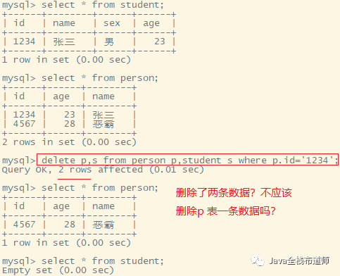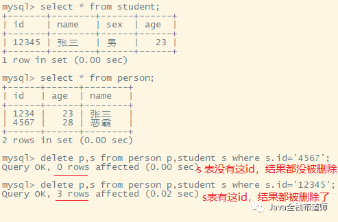 条件成立,则删除有条件表的对应数据,没条件的则全表删除;
