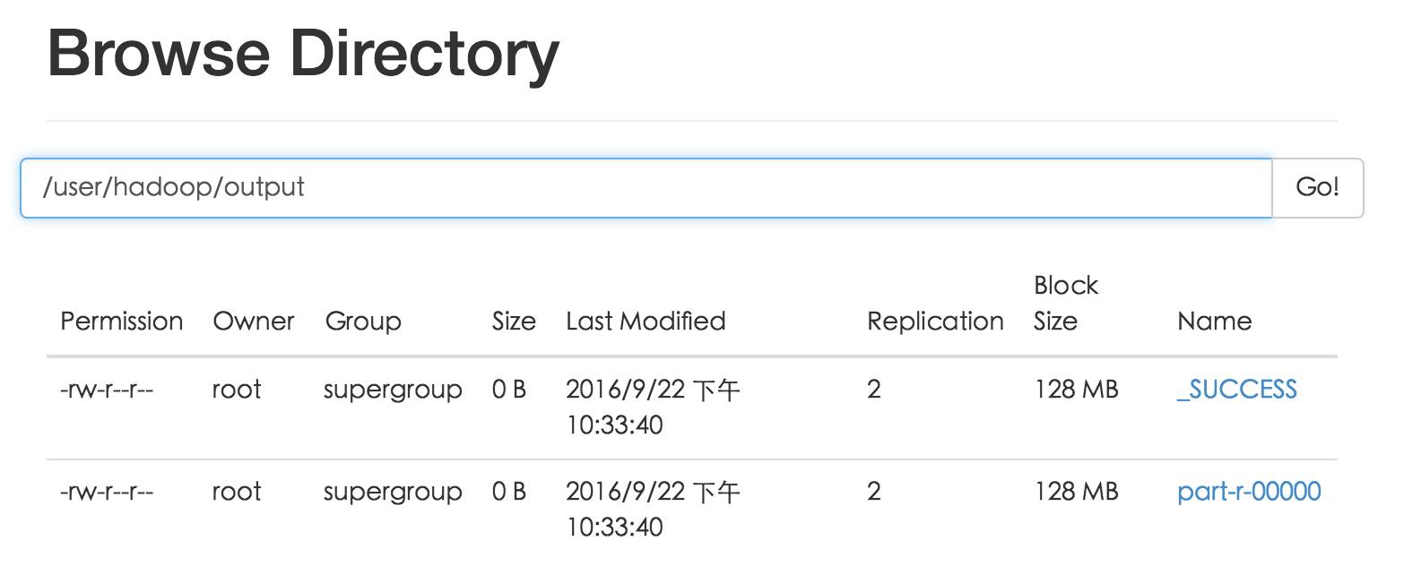 hadoop 安装包中提供了一个示例程序,我们可以使用它对刚刚上传的文件进行测试