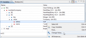 你知道“Display视图”吗?你可以在调试过程中,通过“Window” -> “Show View” -> “Display”来激活它。现在,你的eclipse应该是一个空白的新视图。你可以使用这个视图,输入或者演算一些新的代码。这些代码在当前的调试位置的上下文环境中被执行,这意味着,你可以使用所有变量甚至是内容助手。要执行你的代码的话,只需标记它,并使用右键菜单或者CTRL+U(执行)或者 CTRL+SHIFT+I (检查).
