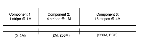 - 第一部分:Stripe Size 为 1 MB,Stripe Count 为 1,用于优化小文件或文件开头部分的访问效率;