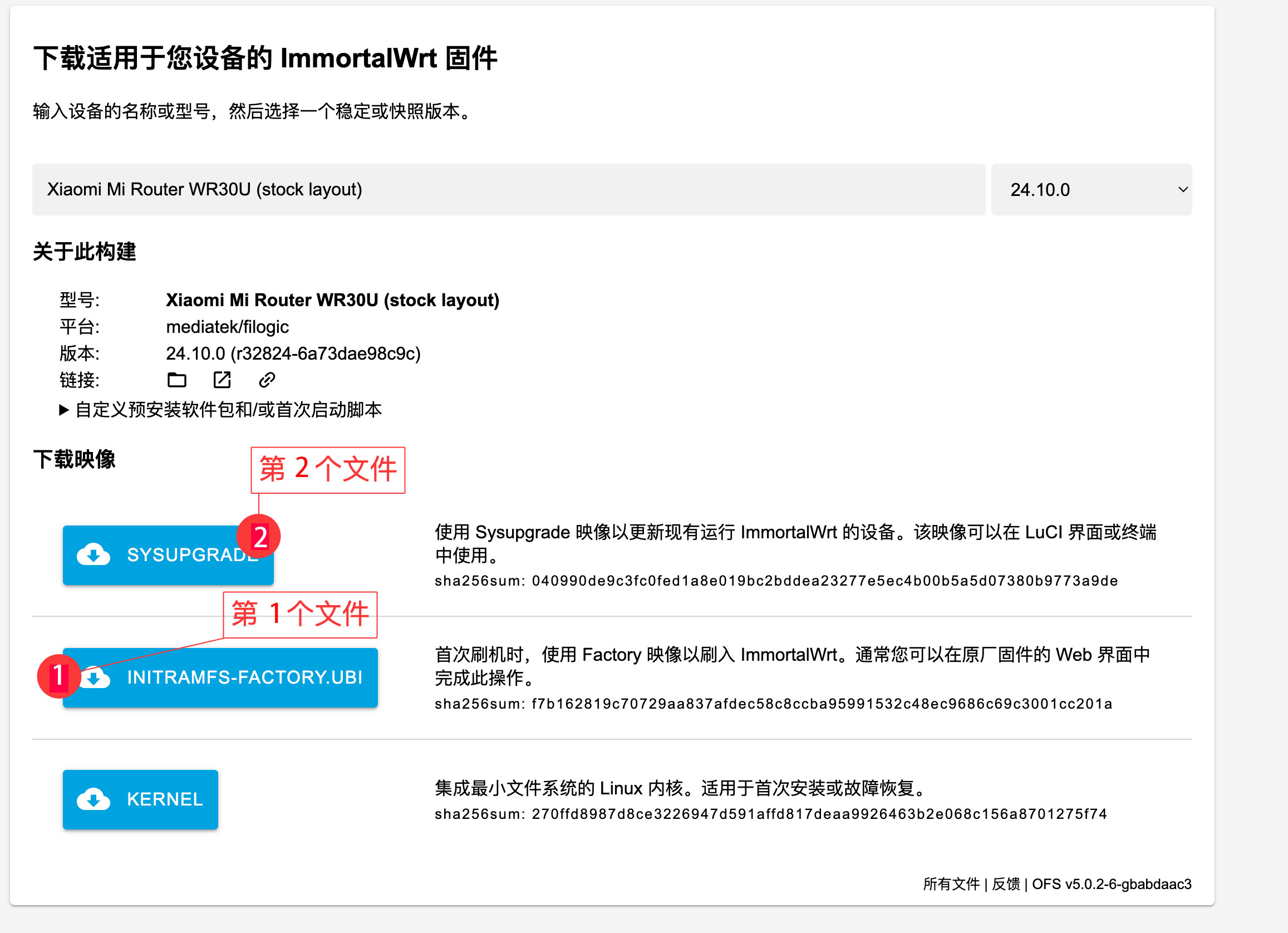 我们在 immortalwrt 官网上搜索 wr30u 的时候还发现有两种固件供选择: