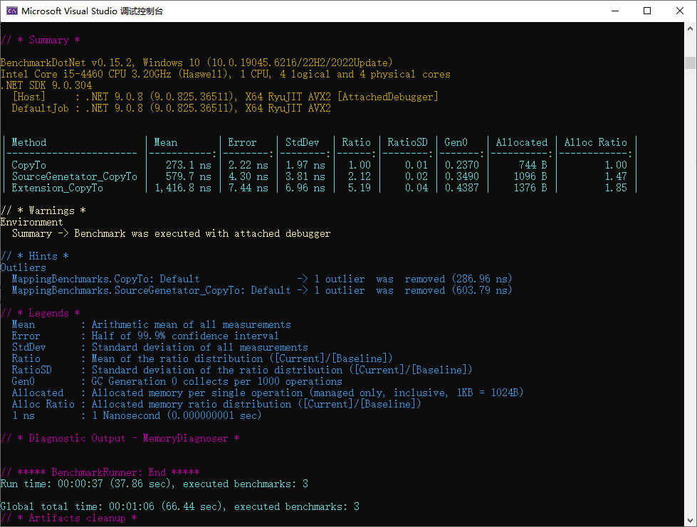 测试环境为windows10、.net版本是9.0.8、引用的BenchmarkDotNet版本是0.15.2。