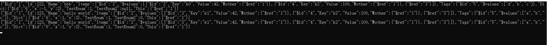 增加了循环引用和多次拷贝(items有三个子对象但是有两个指向同一个引用),基本上能够覆盖大部分深拷贝场景了。接下来就是运行后的截图