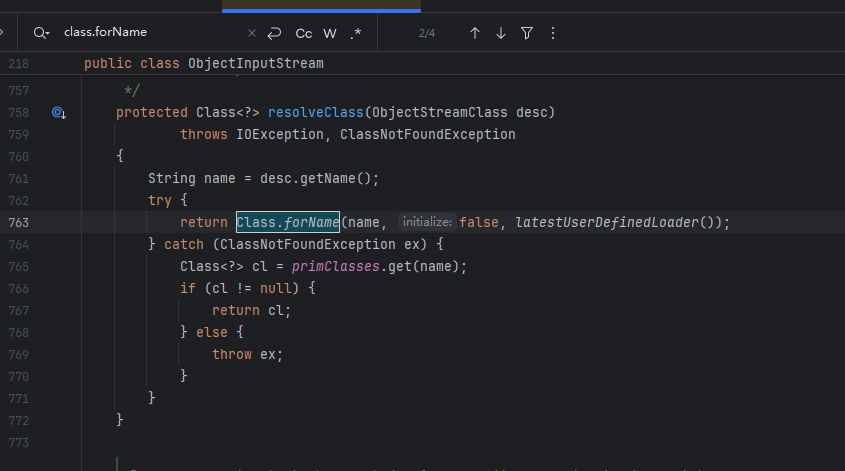 原因是:在shiro.io包中重写了resolveClass方法;从ClassUtils.forName(osc.getName())可以看出来这个方法在java中是用来寻找类名的;