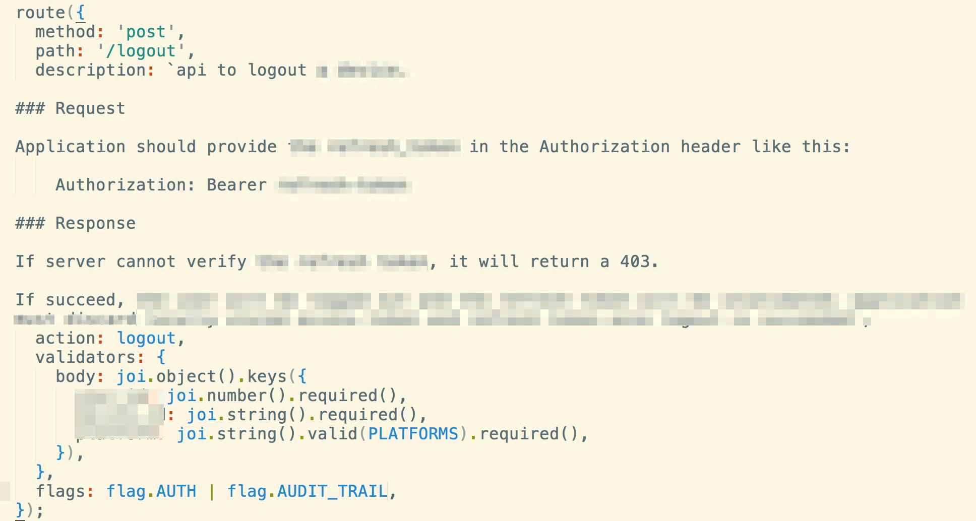 /logout路由有一个很详细的 markdown 撰写的文档(还记得我们的需求是:easy to document 么?)