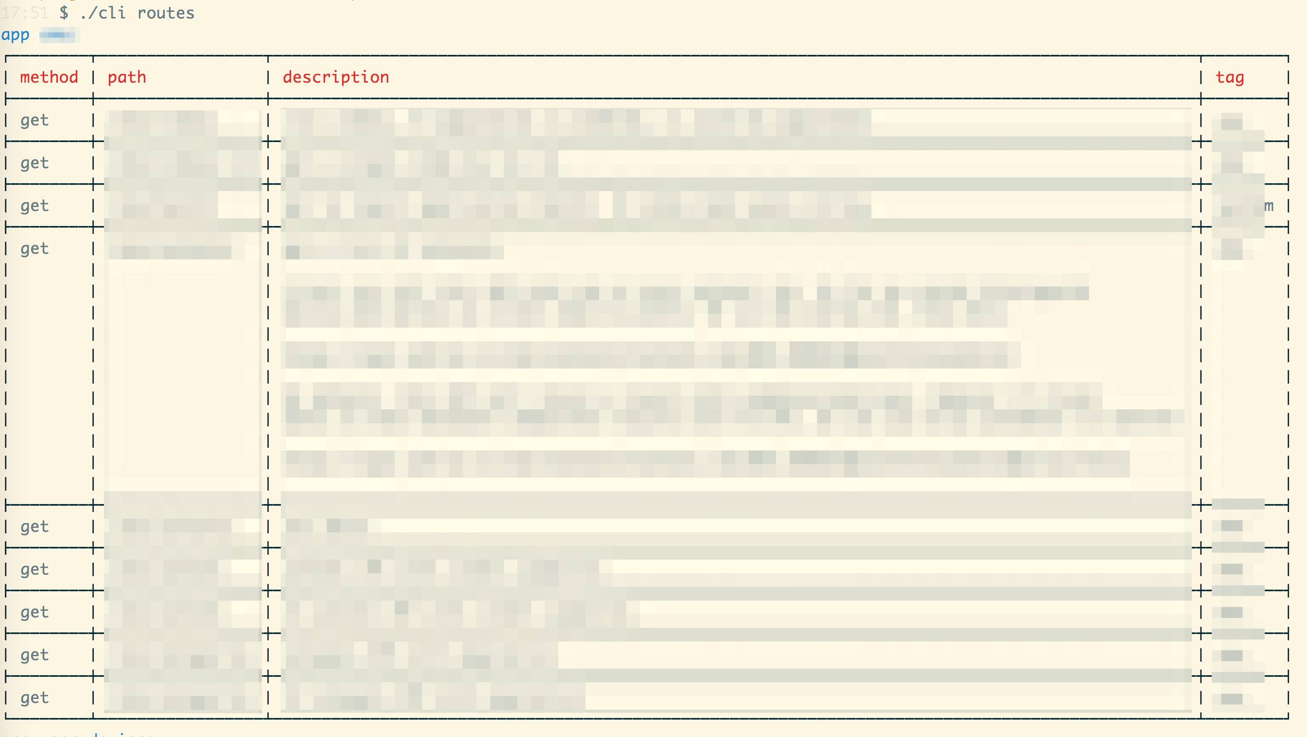 (通过 route 生成的 cli 文档,供 API 开发者 introspection)