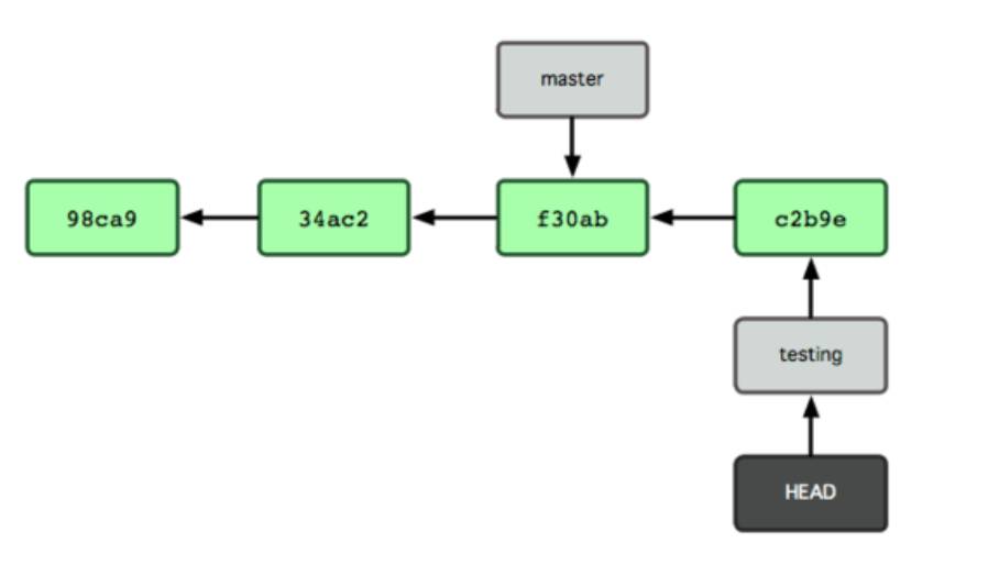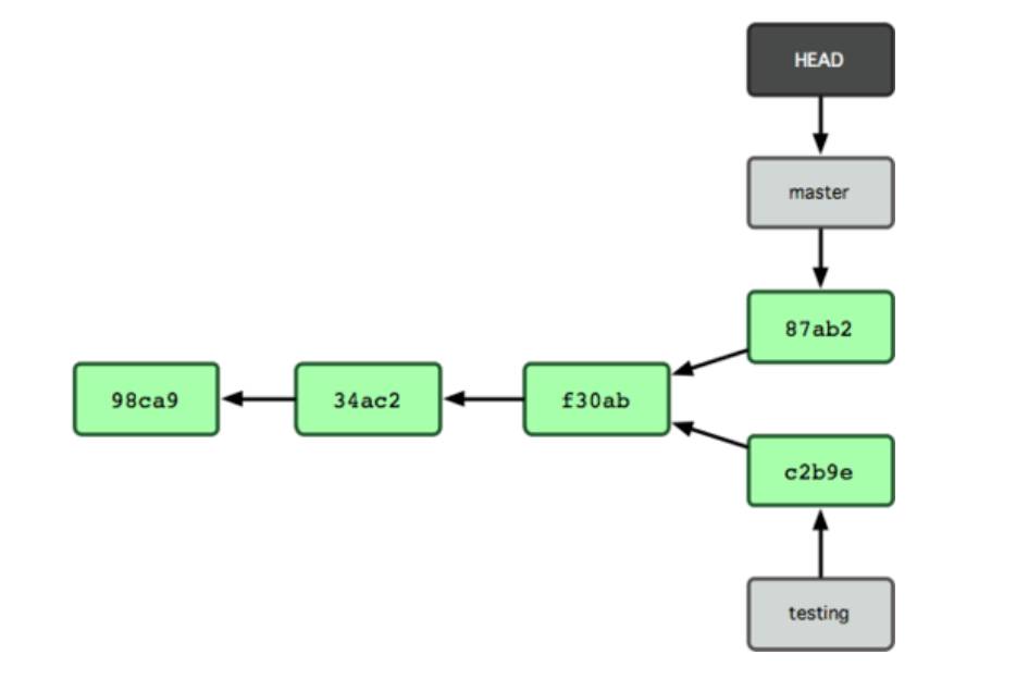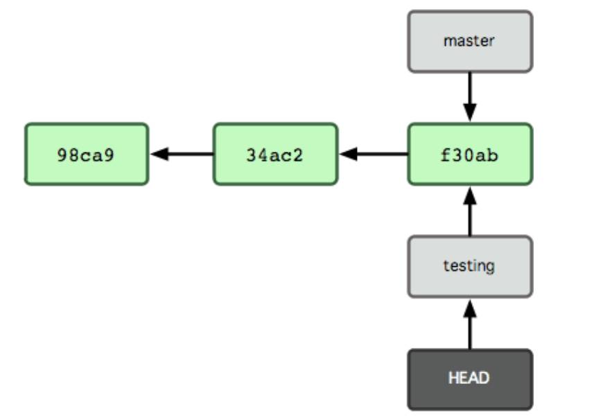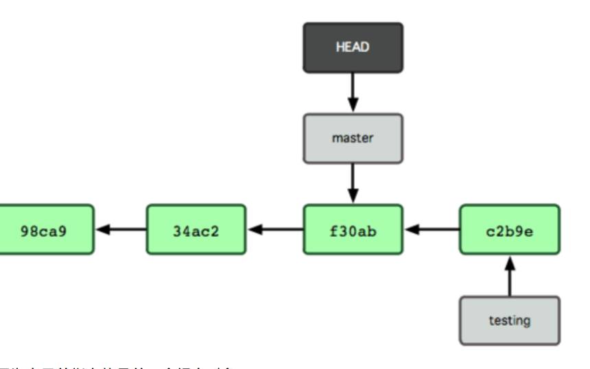 新创建一个分支,就是新增加一个指向最新提交对象的指针:git branch testing