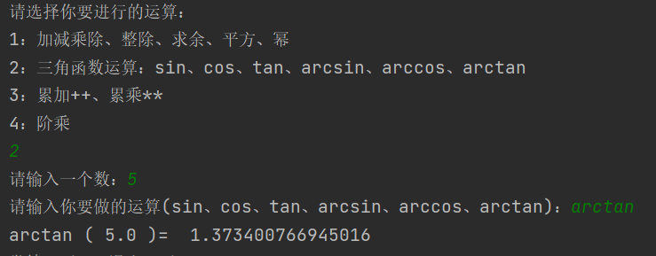 2:三角函数运算:sin、cos、tan、arcsin、arcsos、arctan